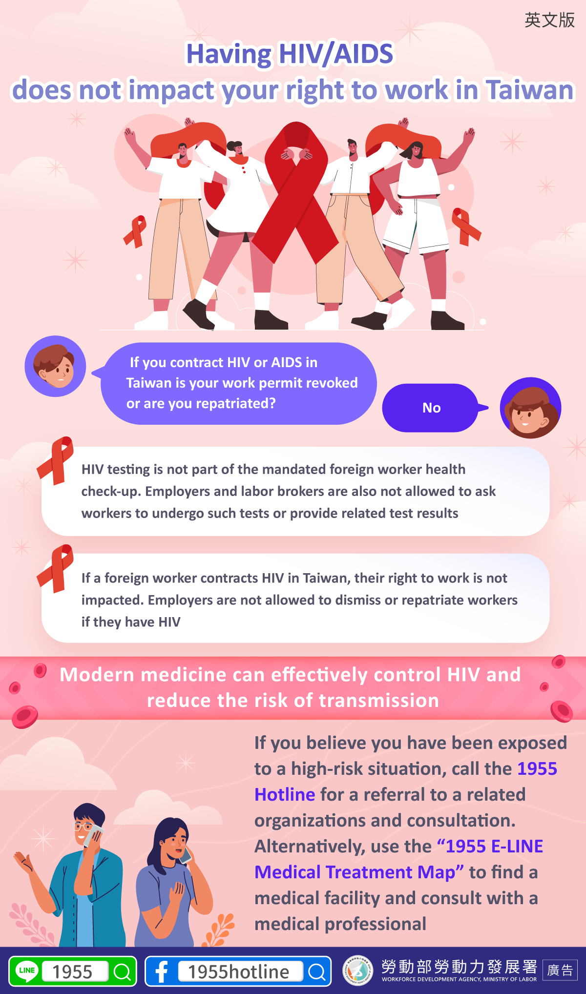 Having HIV/AIDS does not impact your right to work in Taiwan