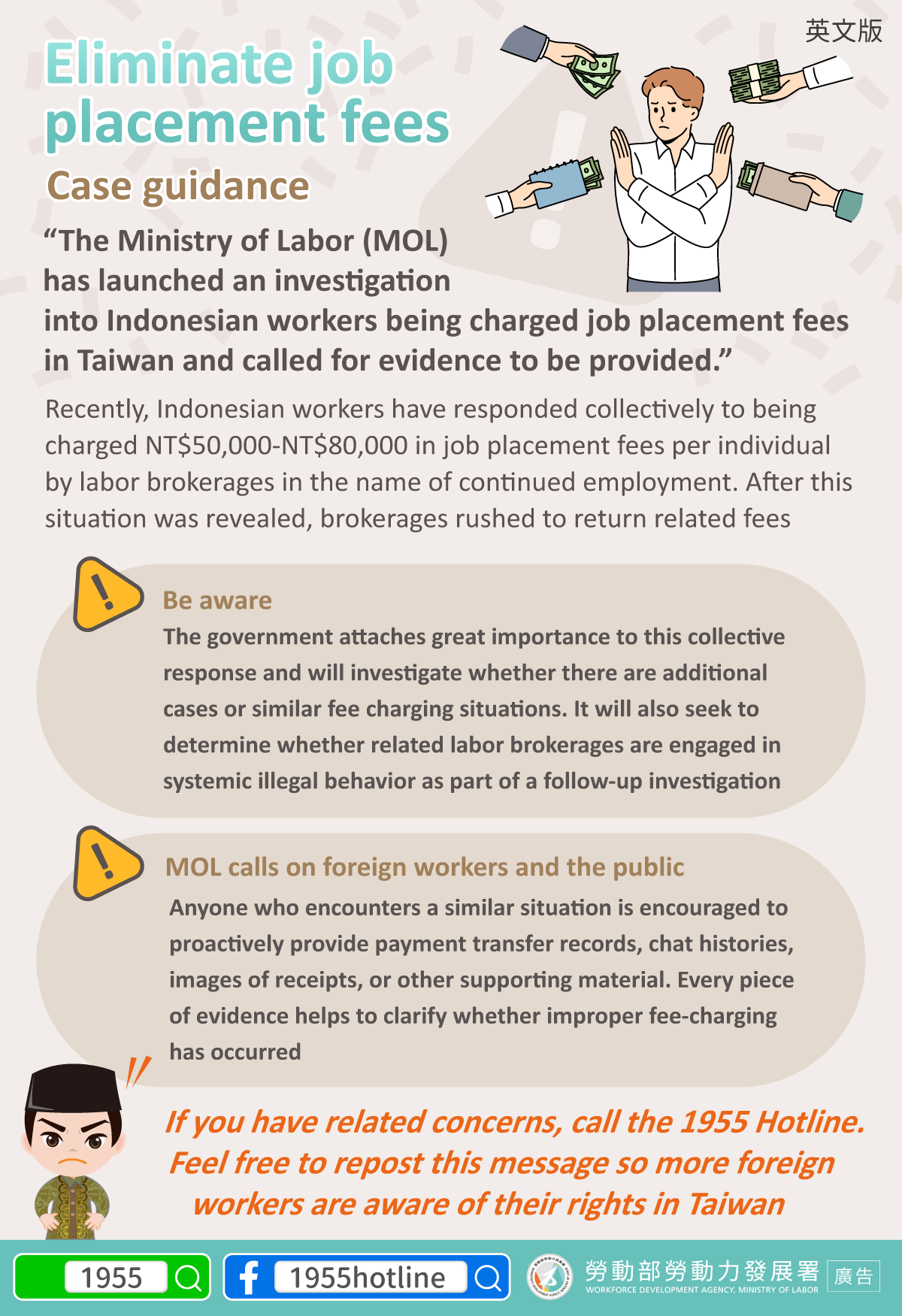 仲介不得向移工收仲介費