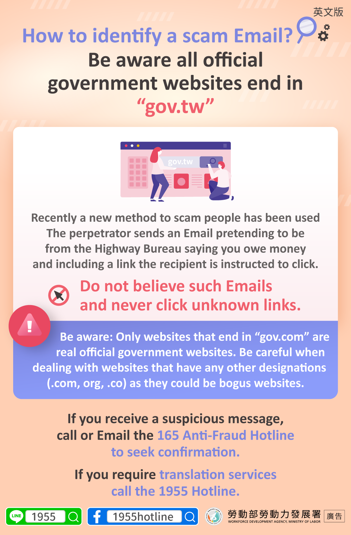 如何辨識詐騙Email?請認明「gov.tw」結尾的官方網站