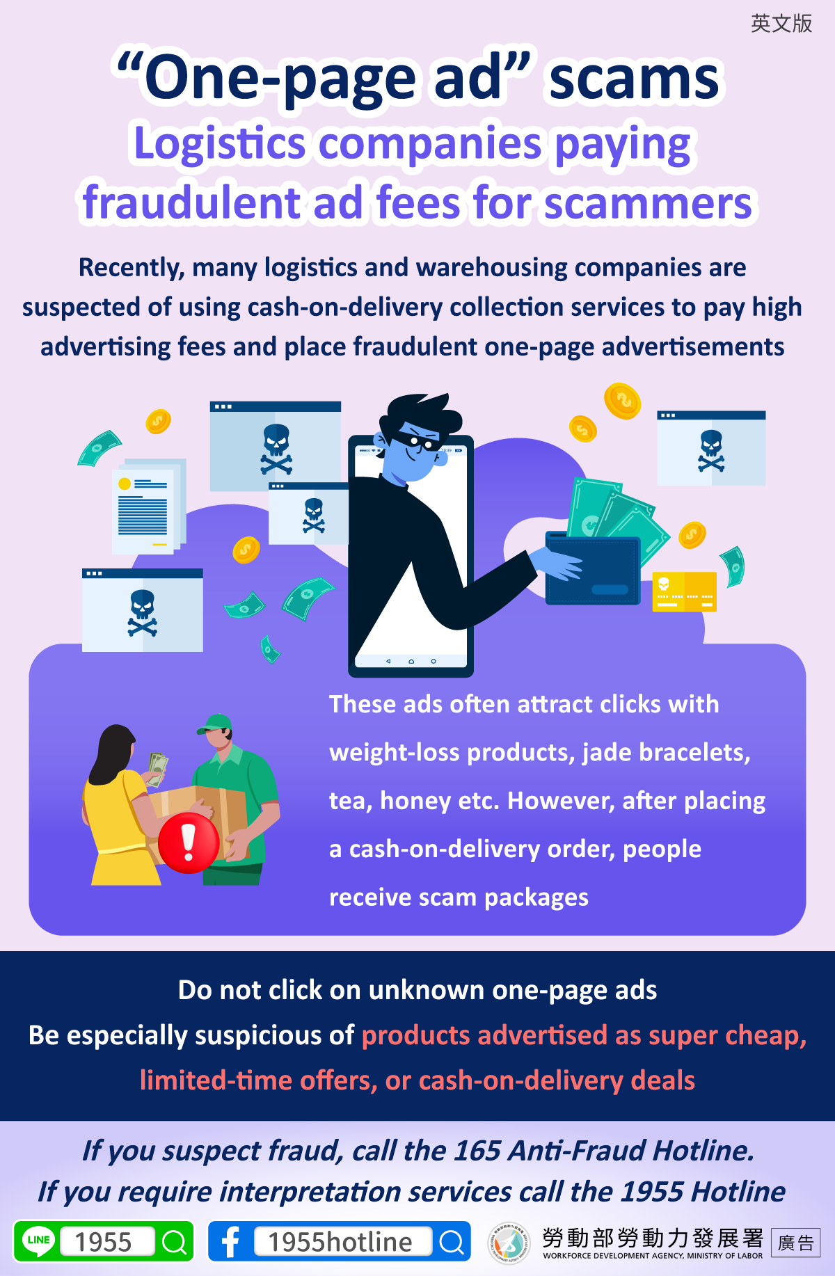 “One-page ad” scamsLogistics companies paying fraudulent ad fees for scammers