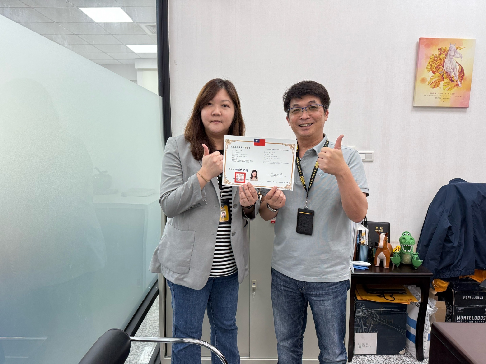 本公司同仁李錦華、李志鴻、林以葳等三位,經 2025 年第一梯次之考試並獲通過,已於日前取得私立就業服務人員之證書,於此肯定並賀喜以上三位努力所得成果之同時,亦同步鼓勵其他有志更上一層之同事,繼續戮力以赴,莫讓取得證照之同仁專美於前,替自己終生學習及提升專業技能而努力,並替公司的榮耀而盡力。