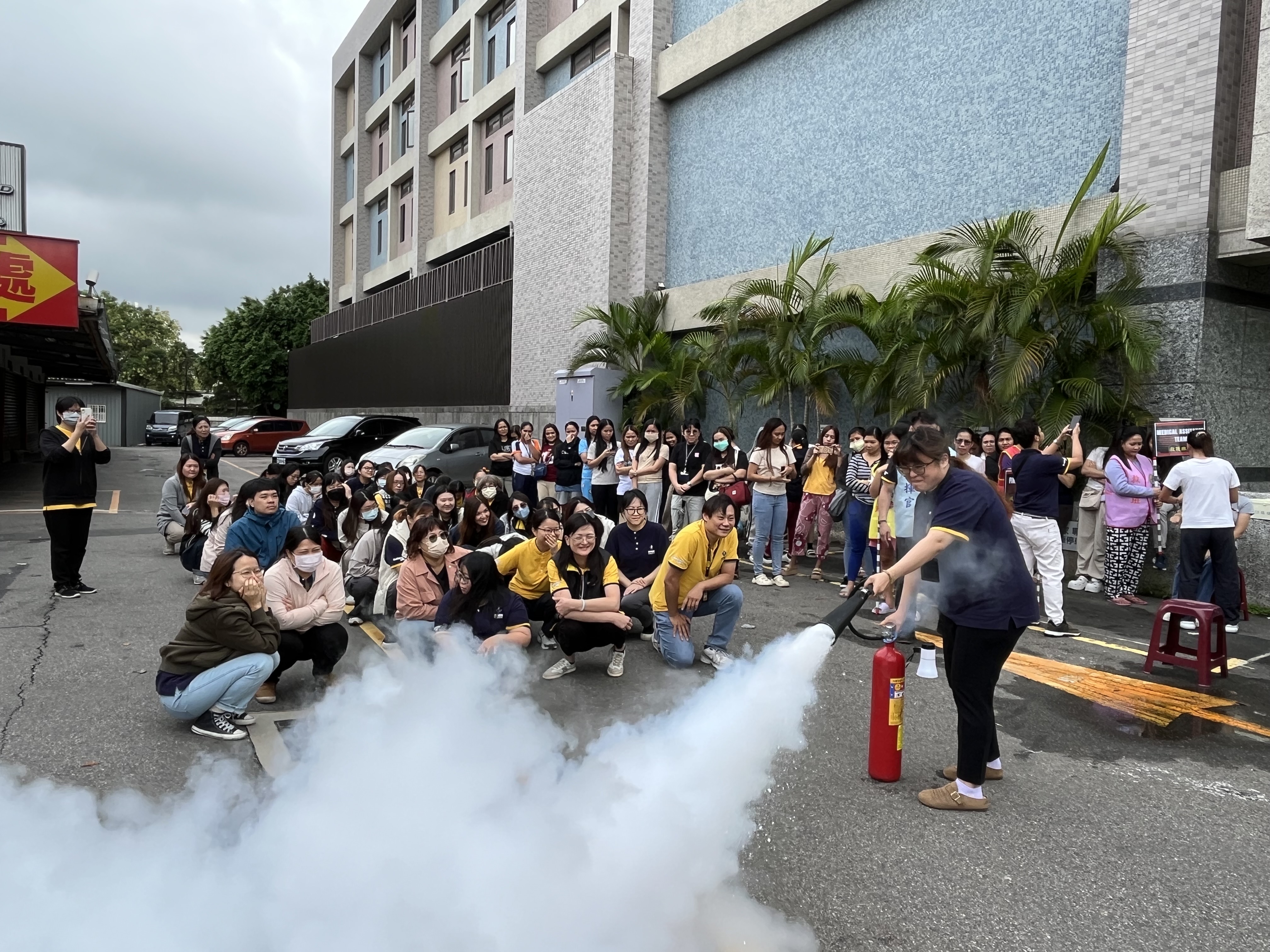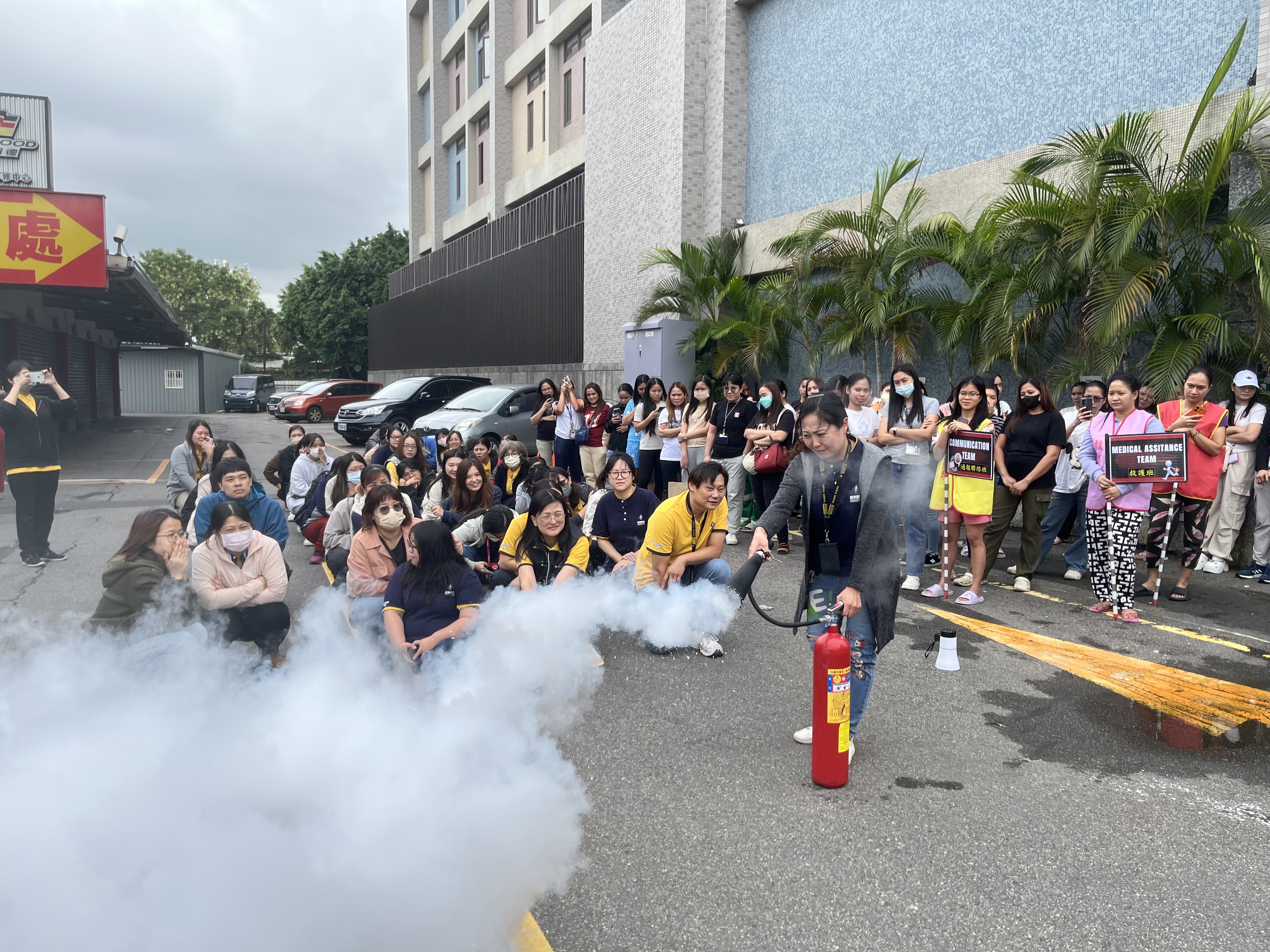 在此次之消防演練中,同仁已將二氧化碳滅火器之使用方法:「拉瞄壓掃」熟記於心。在實際演練,也將所發現之缺失項目予以註記,並隨後進行後續改善。自衛消防演練之指揮官李萬晉,亦特別以發生於高雄之某電子大廠火災時之逃生為例,說明迅速之疏散作業,來自於對逃生路線的熟悉,以及對意外事故的高度警覺,方能在緊急事故下,依舊有條不穩的進行疏散,在此感謝所有同仁的全力配合。