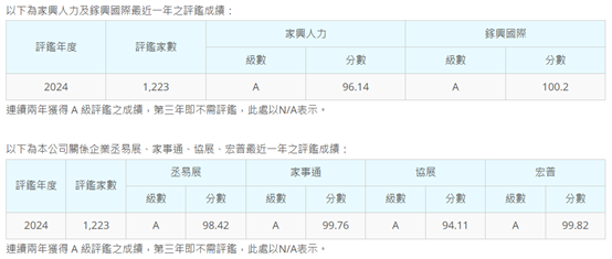 本公司所屬各公司(包含鎵興國際、家興人力、協展、丞易展、家事通、宏普等六家),經「113年度私立就業服務機構從事跨國人力仲介服務品質評鑑」之結果,全數獲得A級之成績,勞動部並於十月三十一日正式公告。