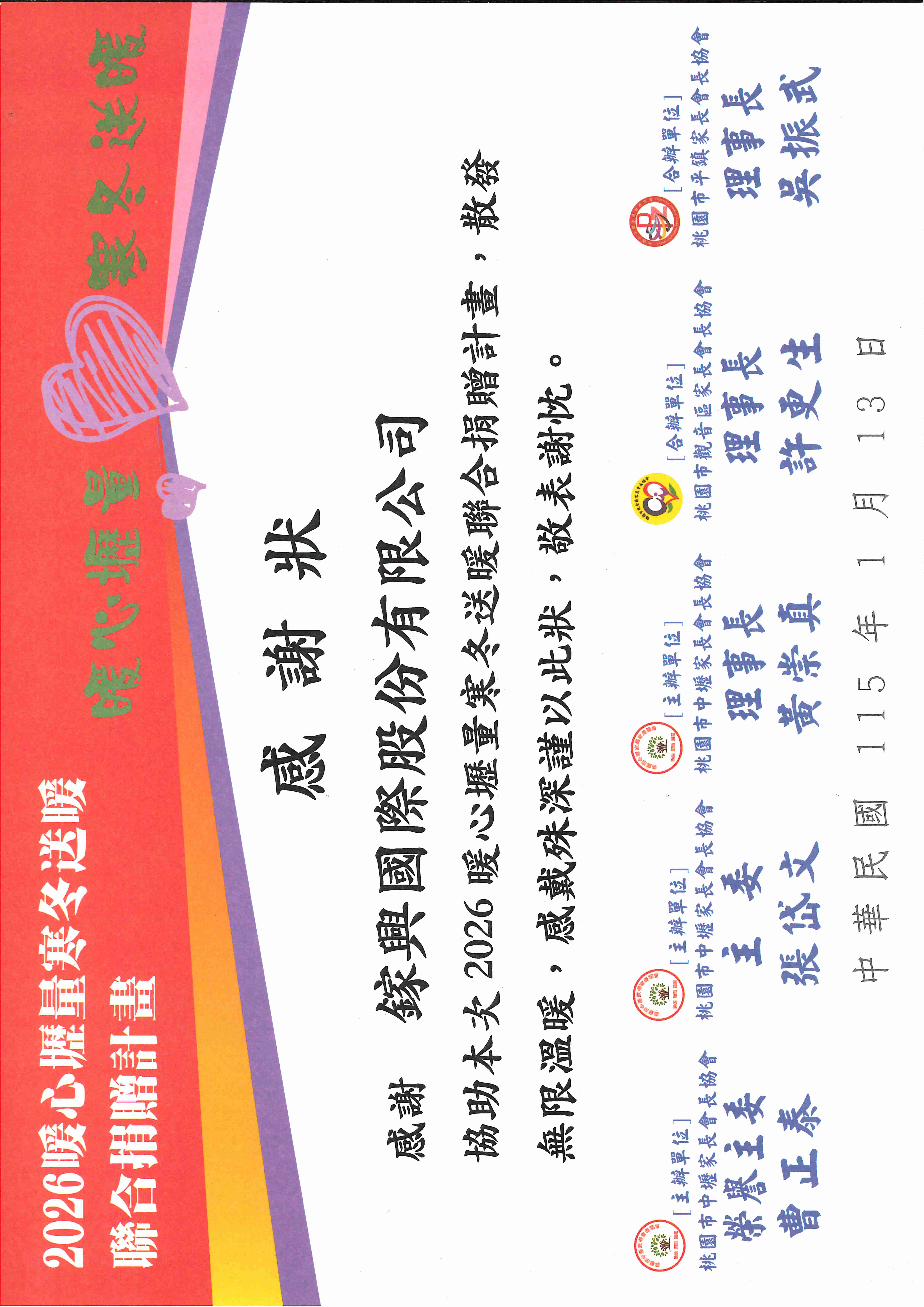 鎵興國際參與桃園市中壢家長會長協會「暖心壢量寒冬送暖活動」