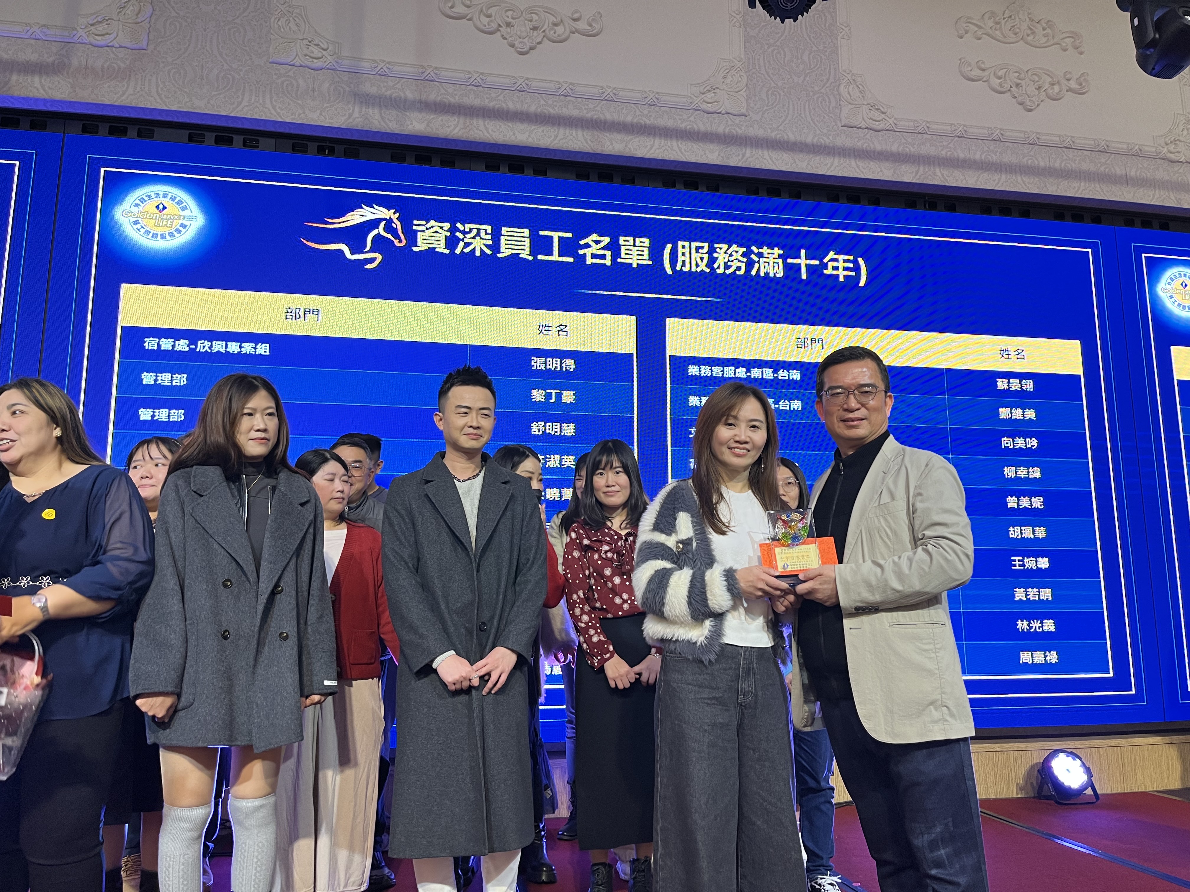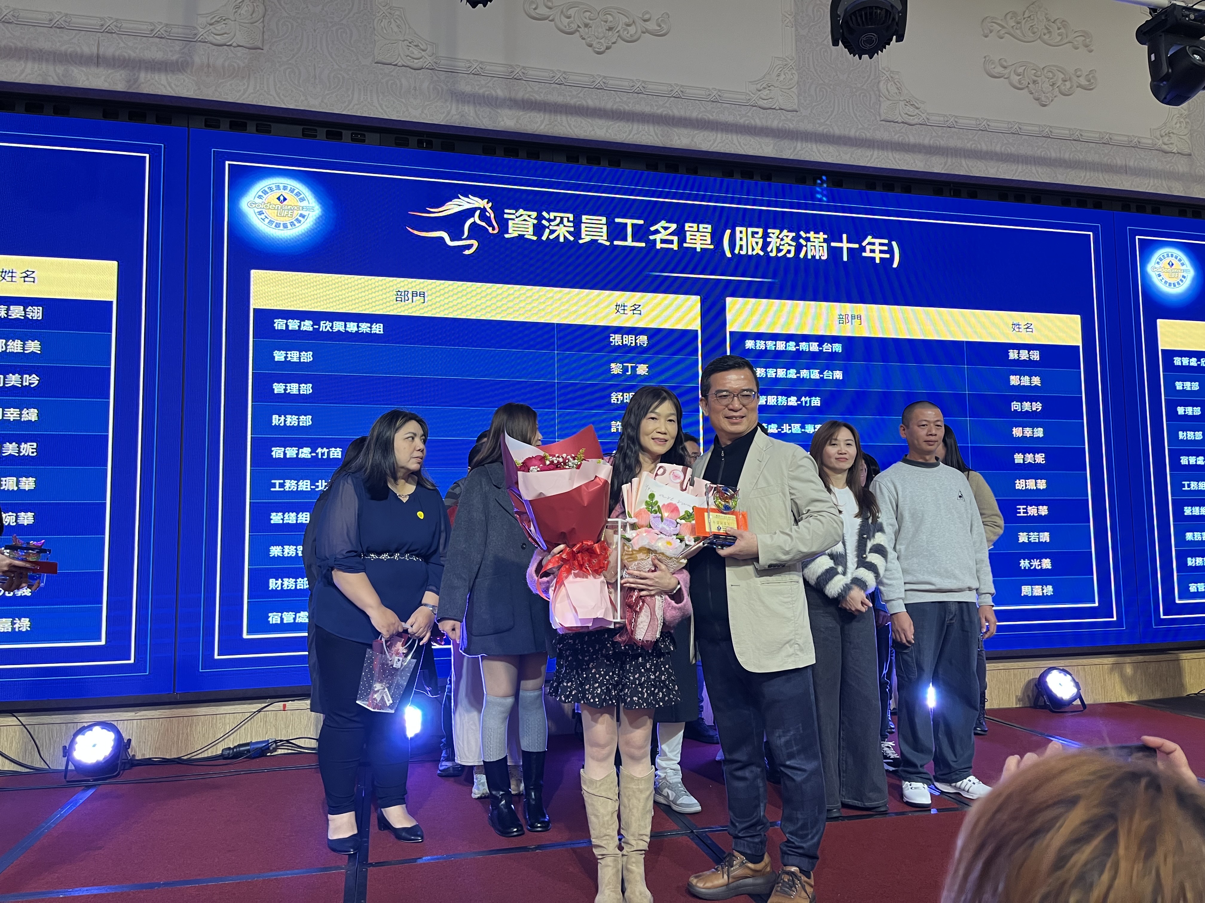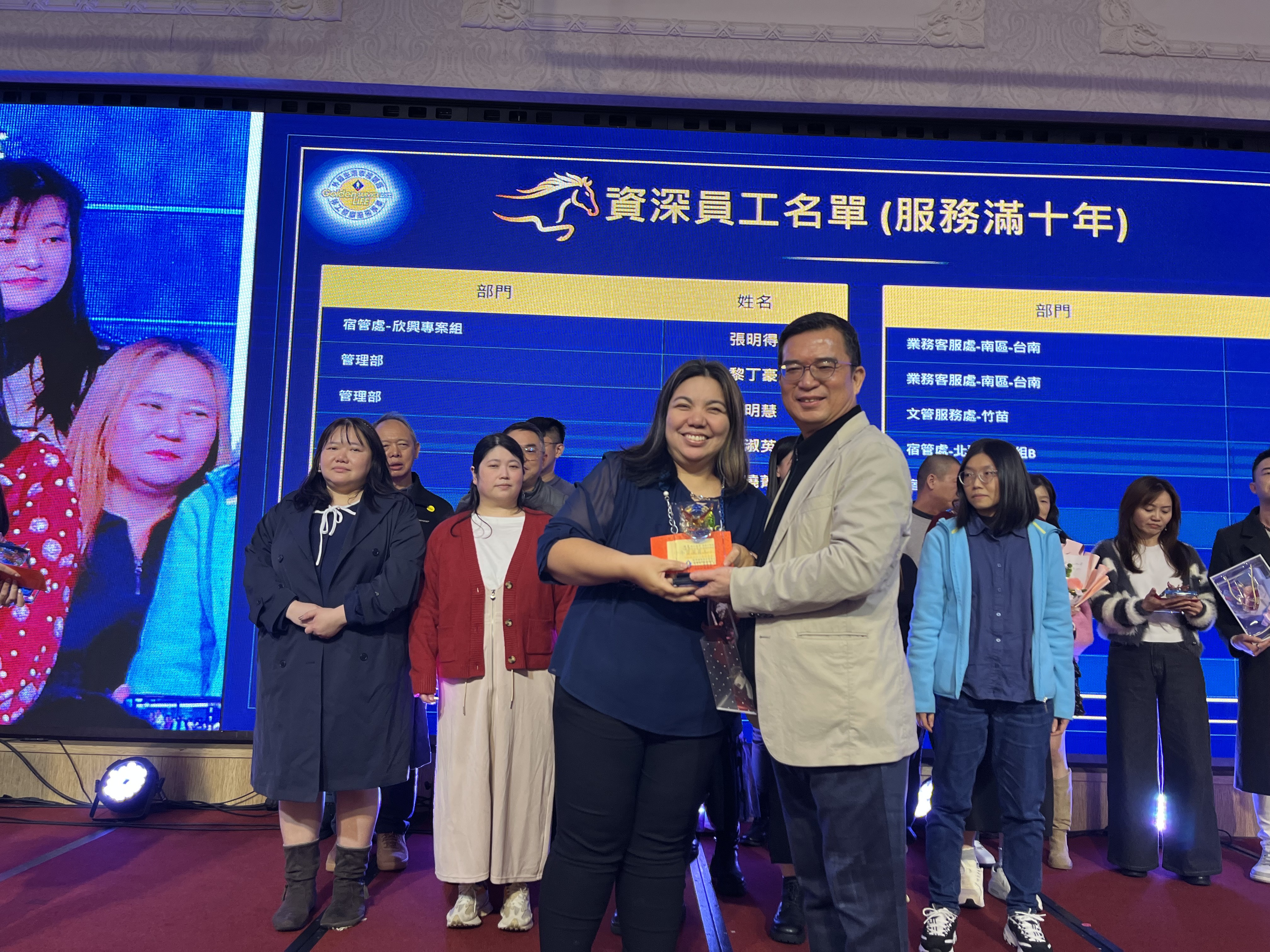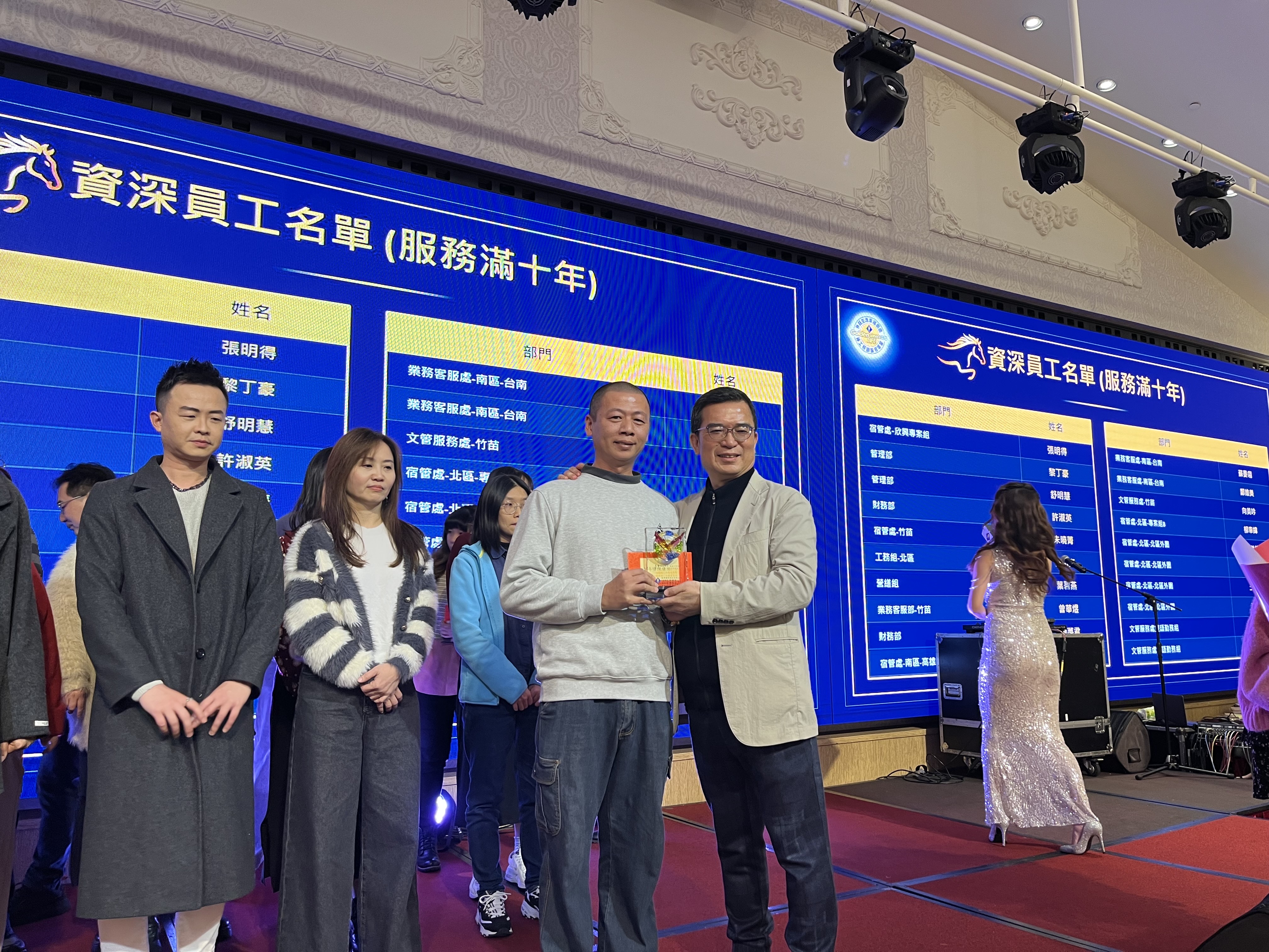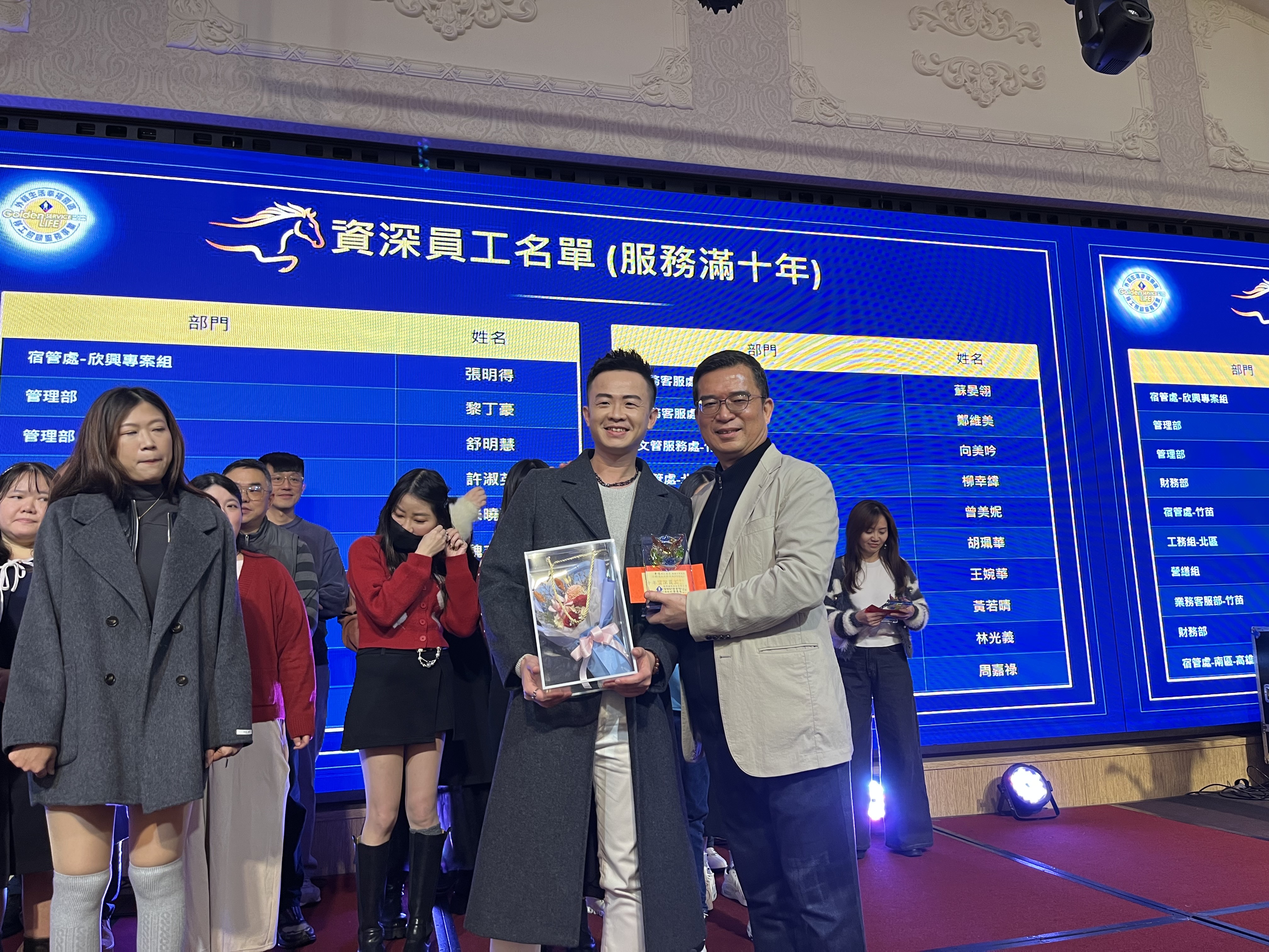今年的餐會中,係以「驅動鎵興AI力,開創新紀元」為主題,亦特別對服務滿三十年的曾素娥、朱慧芳兩位協理表達誠摯的感謝之意,也對服務滿二十年的李錦華、滿十五年杜玉敏協理,以及滿十年的諸多同事們,表達謝意並致上資深員工禮金。