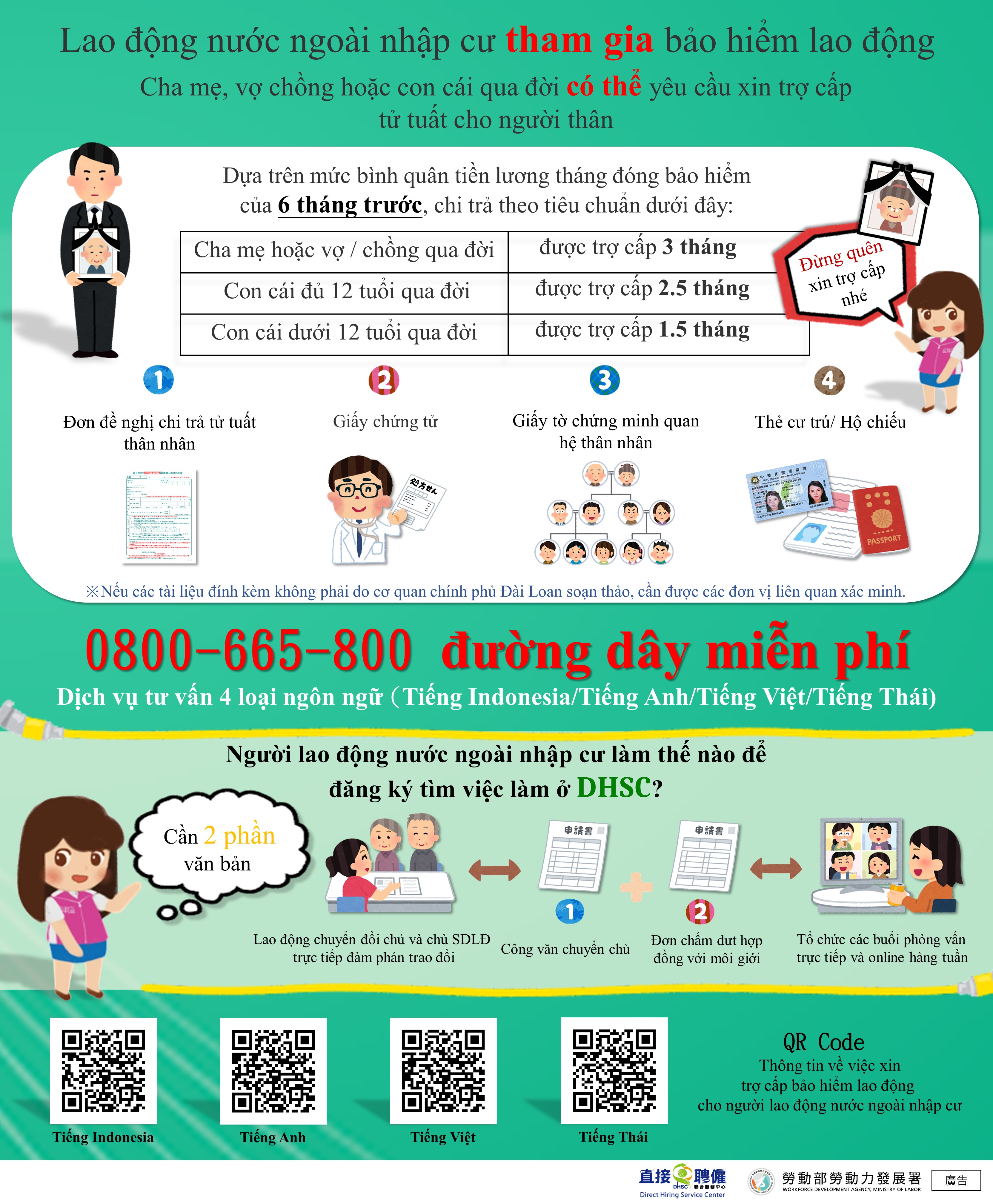 外國人投保勞工保險若其父母、配偶或子女死亡,可請領喪葬津貼