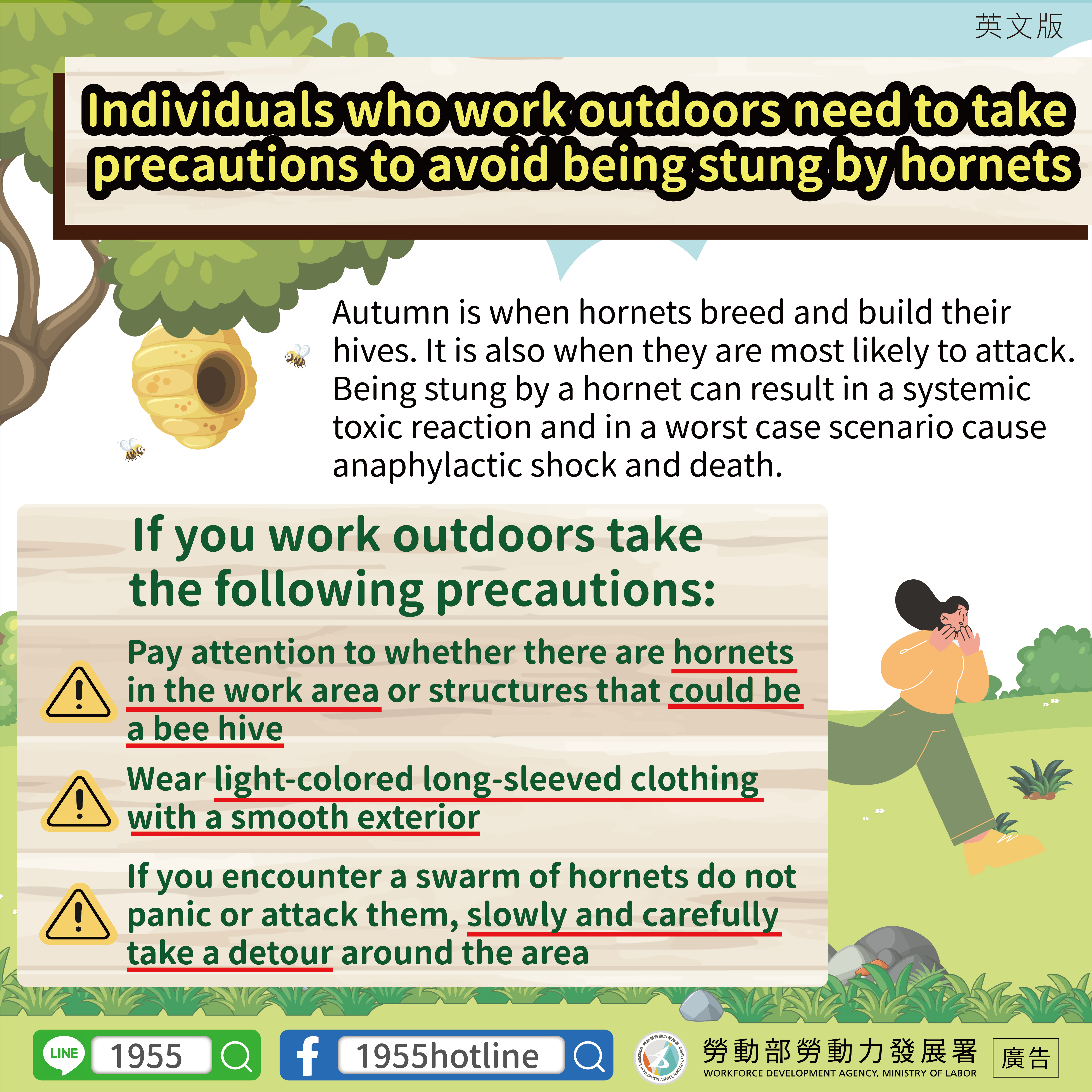 ▎Individuals who work outdoors need to take precautions to avoid being stung by hornets