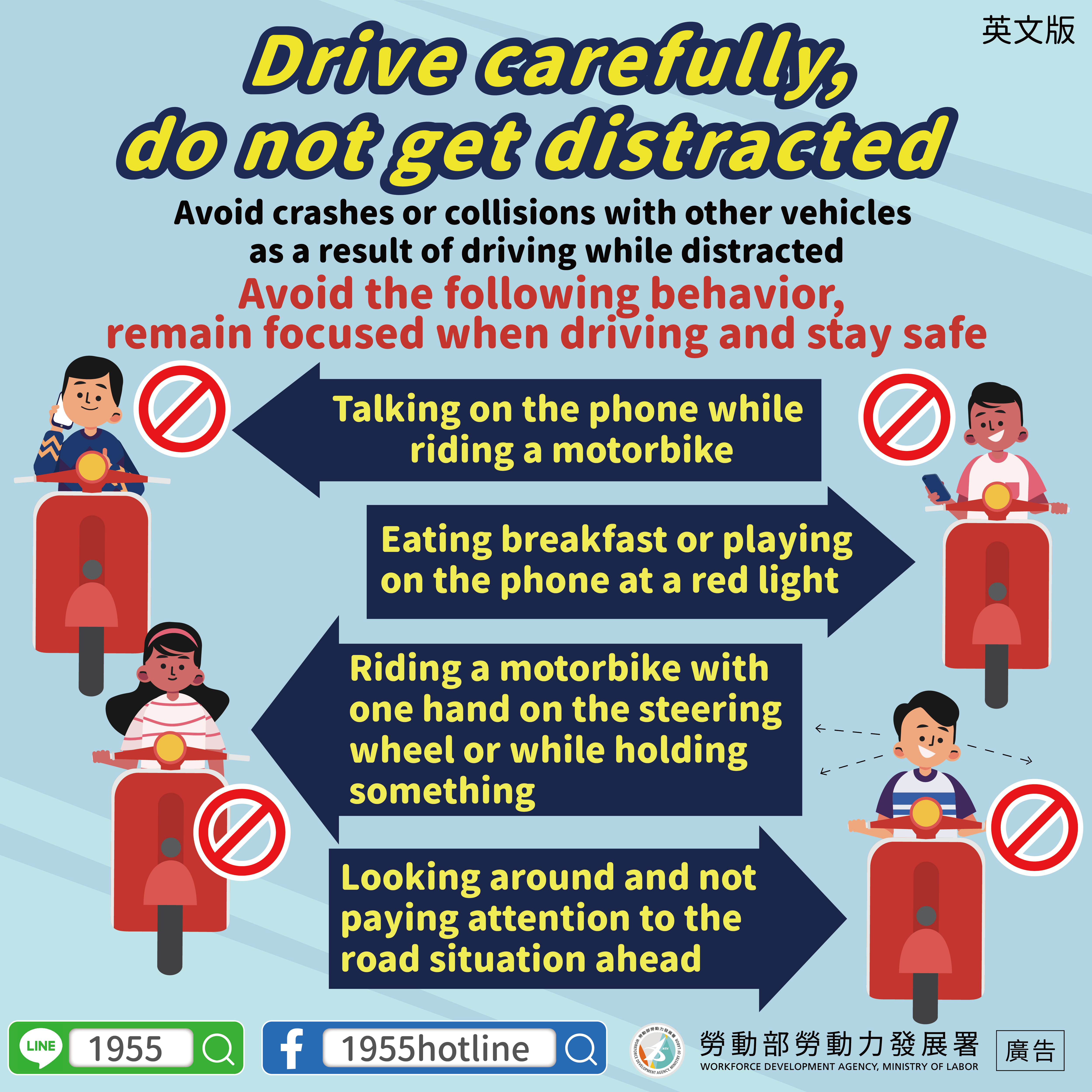 แนะนำว่าควรขับขี่อย่างมีสมาธิจึงจะปลอดภัย โปรดอย่ากระทำดังต่อไปนี้