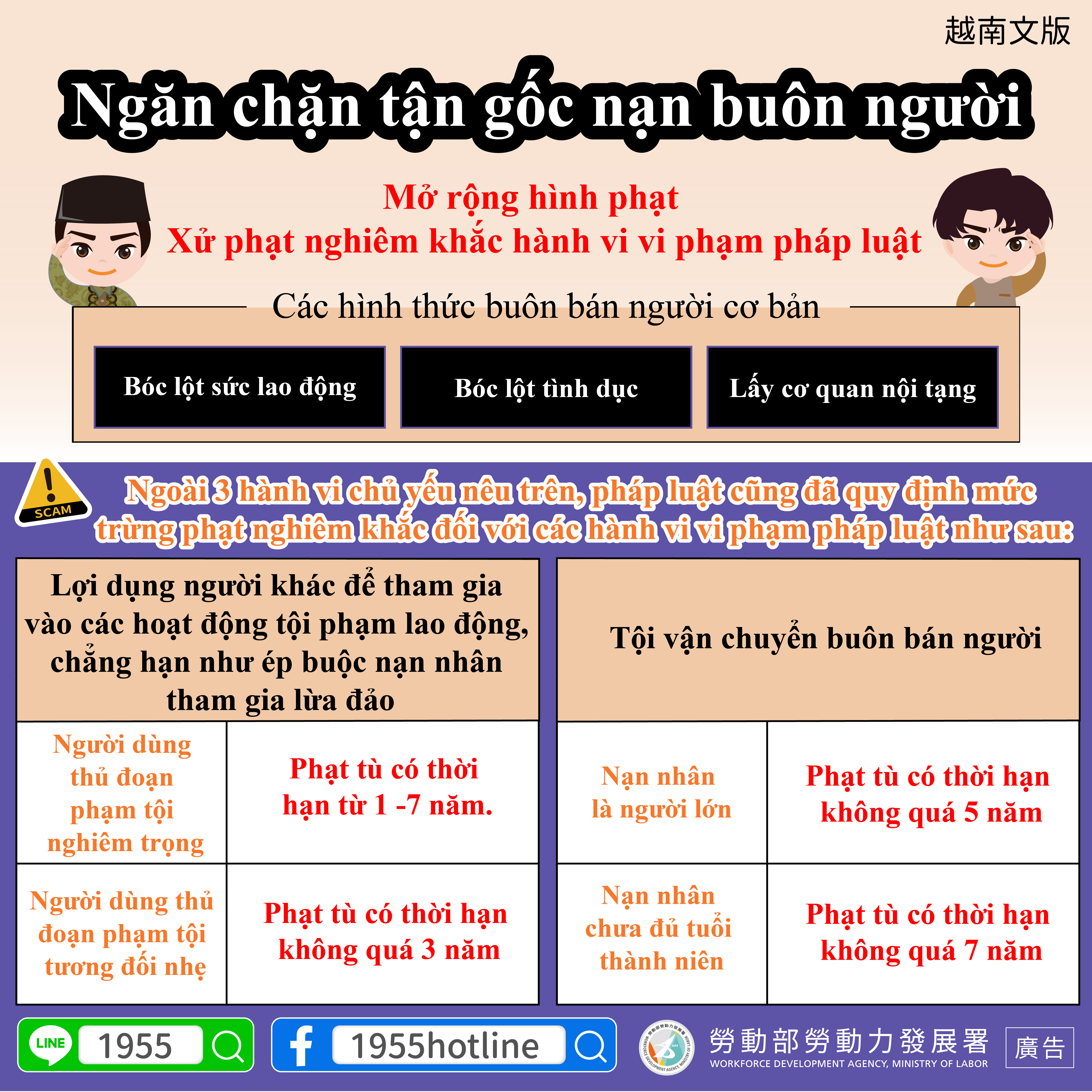 Các hình thức buôn bán người cơ bản-Bóc lột sức lao động/Bóc lột tình dục/Lấy cơ quan nội tạng