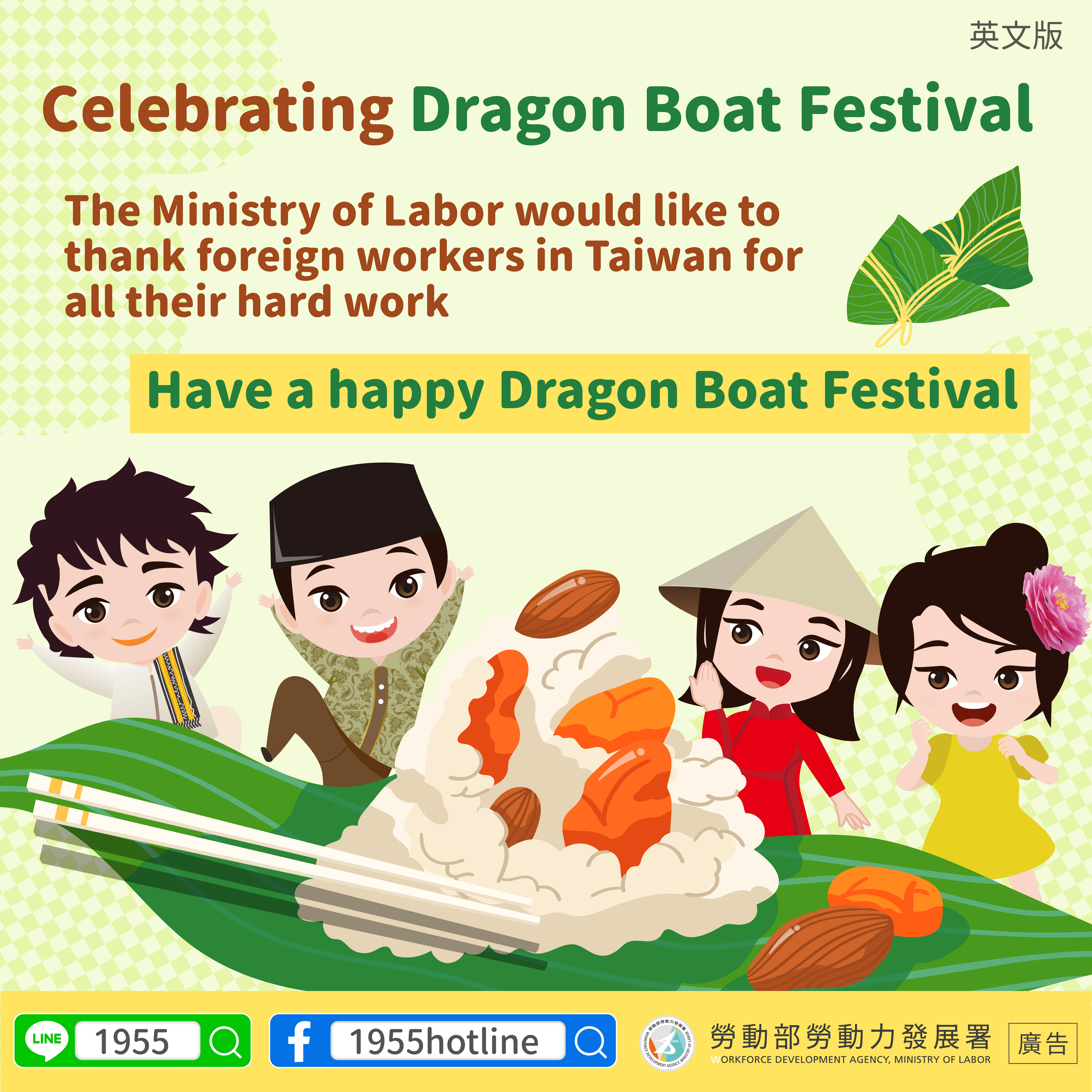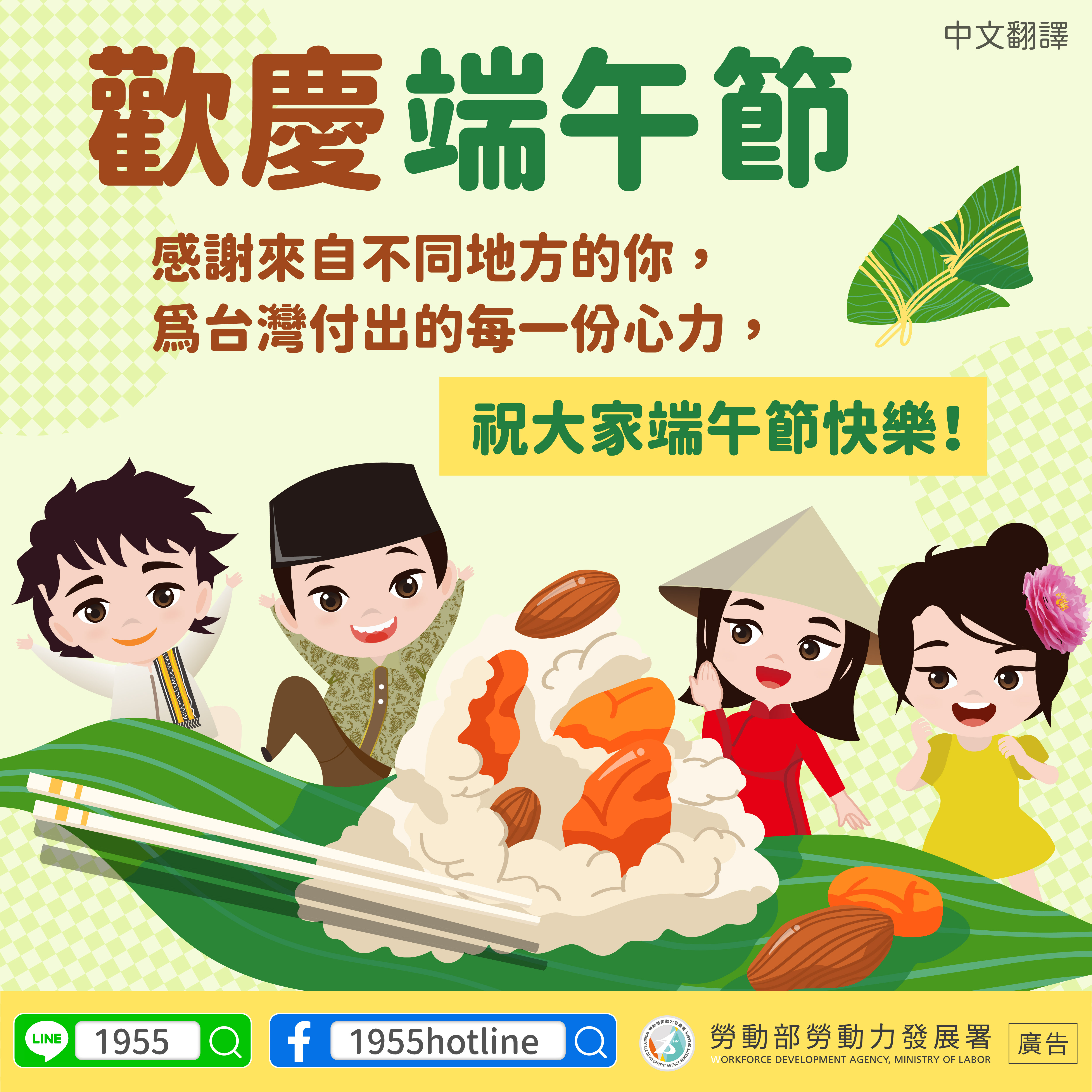 感謝來自不同地方的你,為台灣付出的每一份心力, 祝大家端午節快樂!