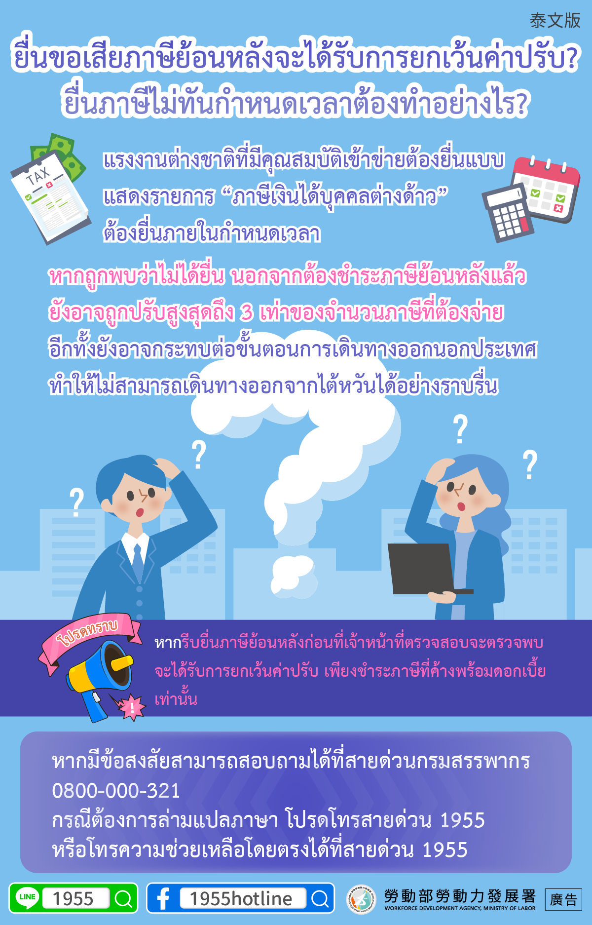 หรือโทรความช่วยเหลือโดยตรงได้ที่สายด่วน 1955