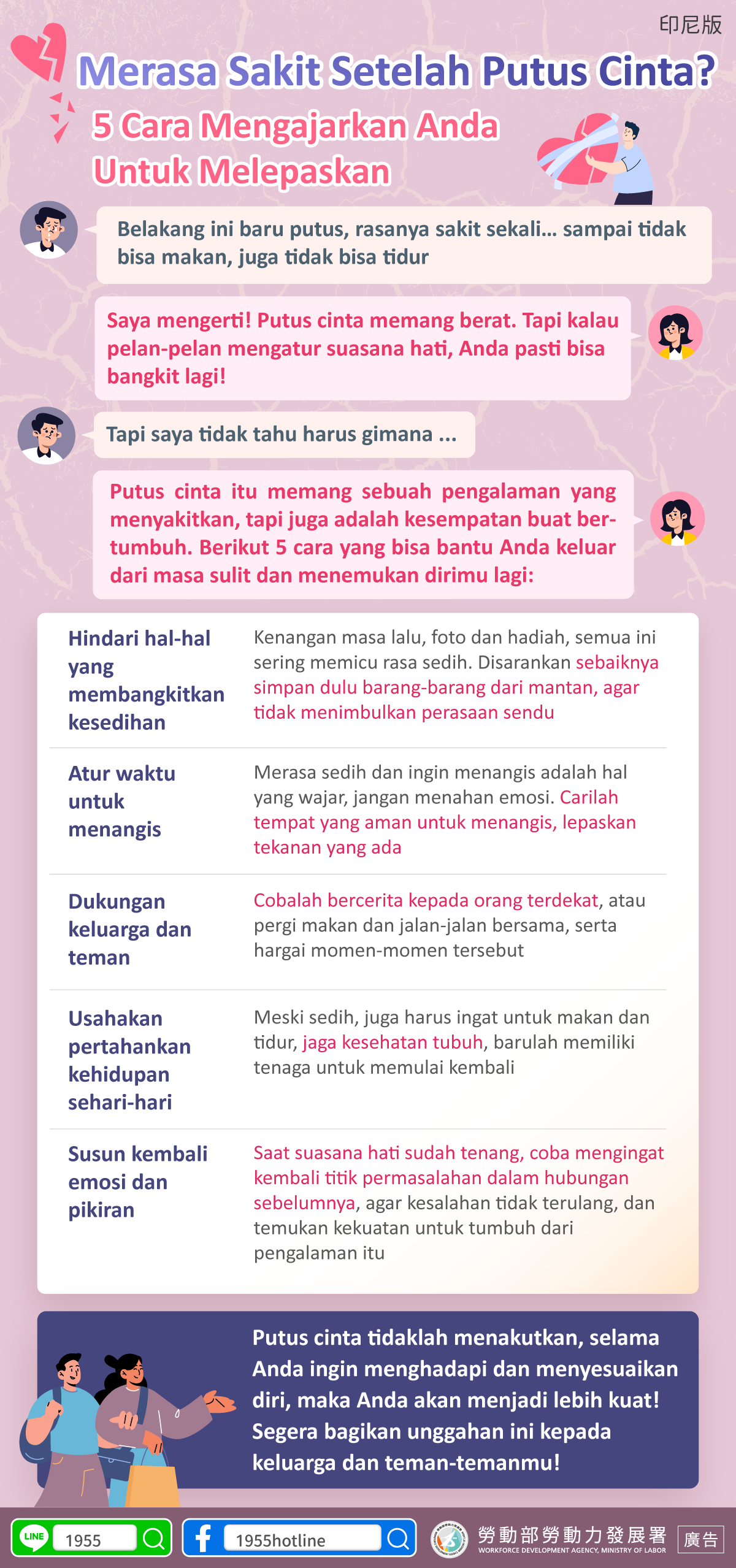 Putus cinta tidaklah menakutkan, selama Anda ingin menghadapi dan menyesuaikan diri, maka Anda akan menjadi lebih kuat! Segera bagikan unggahan ini kepada keluarga dan teman-temanmu!