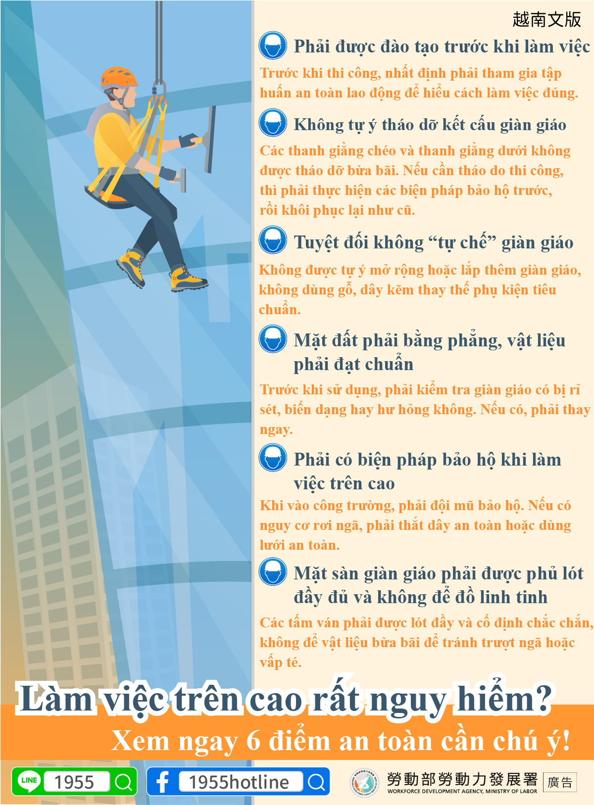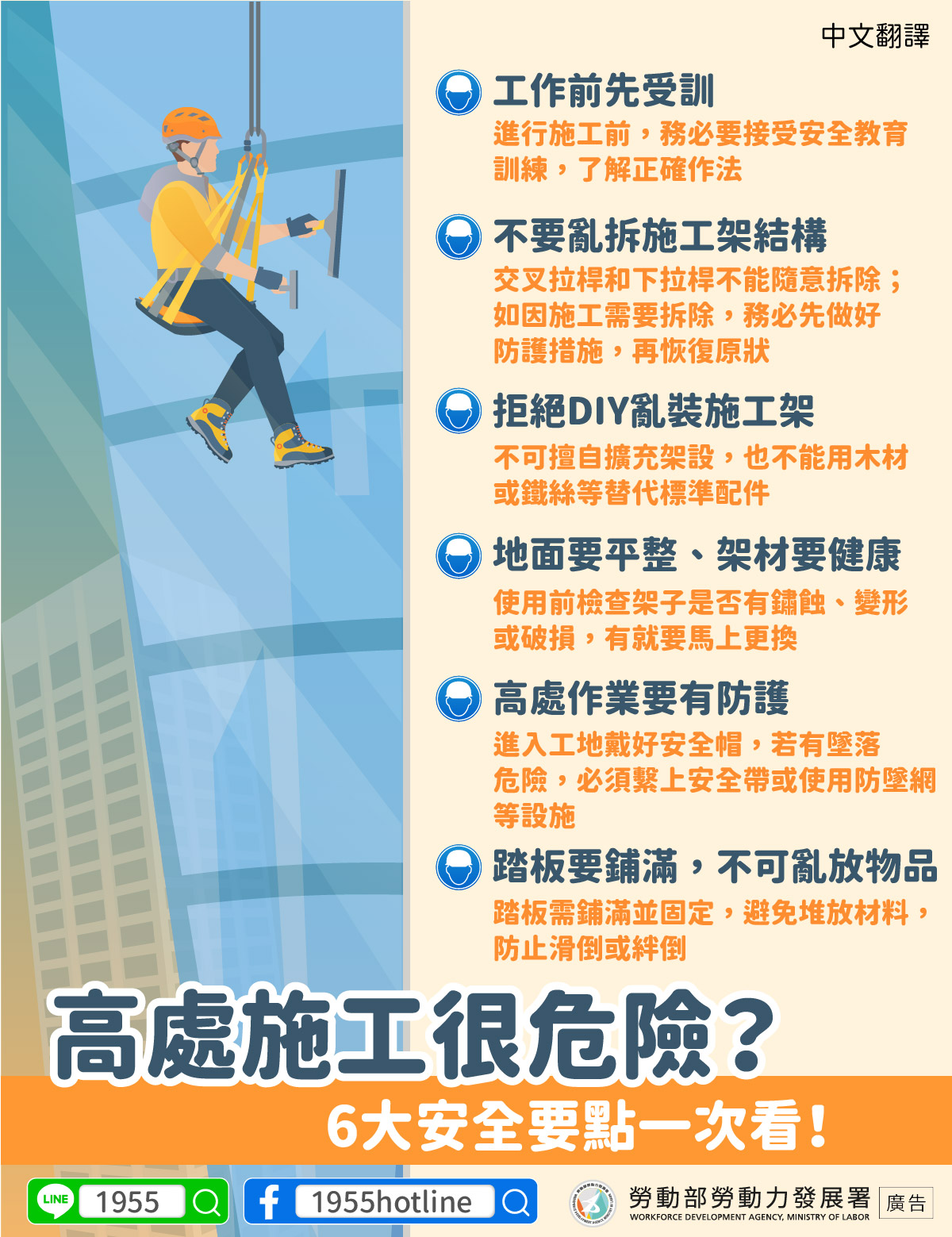 工作前先受訓:進行施工前,務必要接受安全教育訓練,了解正確作法