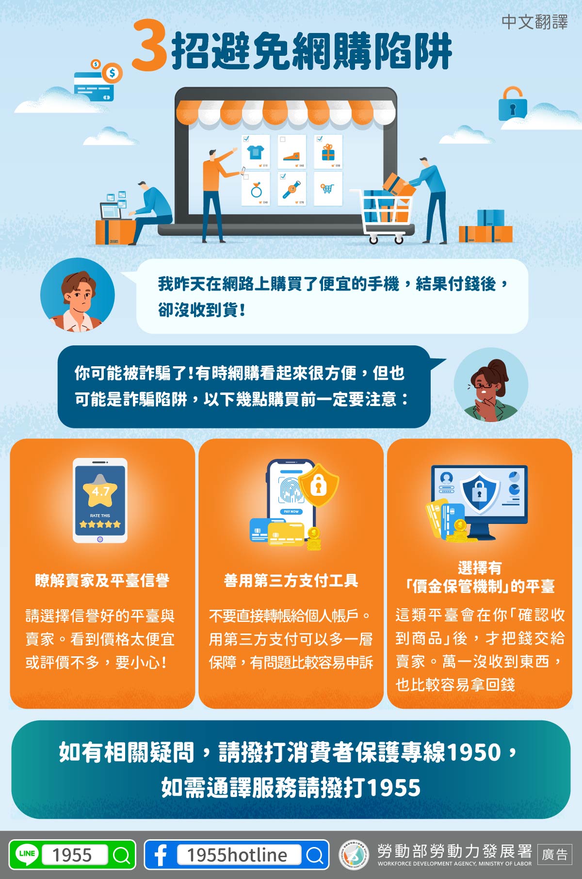 如有相關疑問,請撥打消費者保護專線1950,如需通譯服務請撥打1955