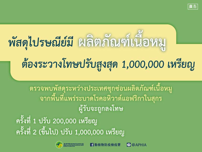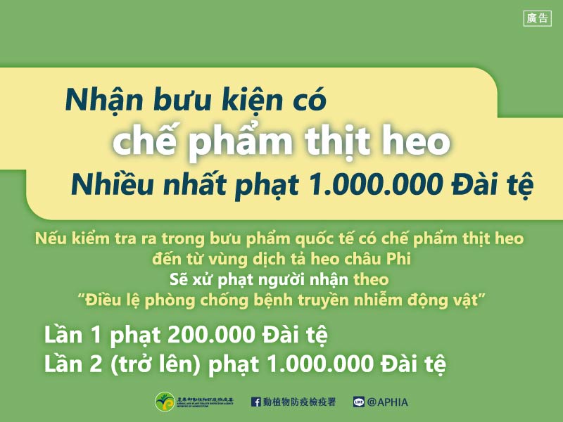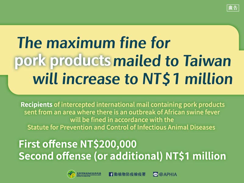 自非洲豬瘟發生地區郵寄輸入豬肉製品裁罰宣導