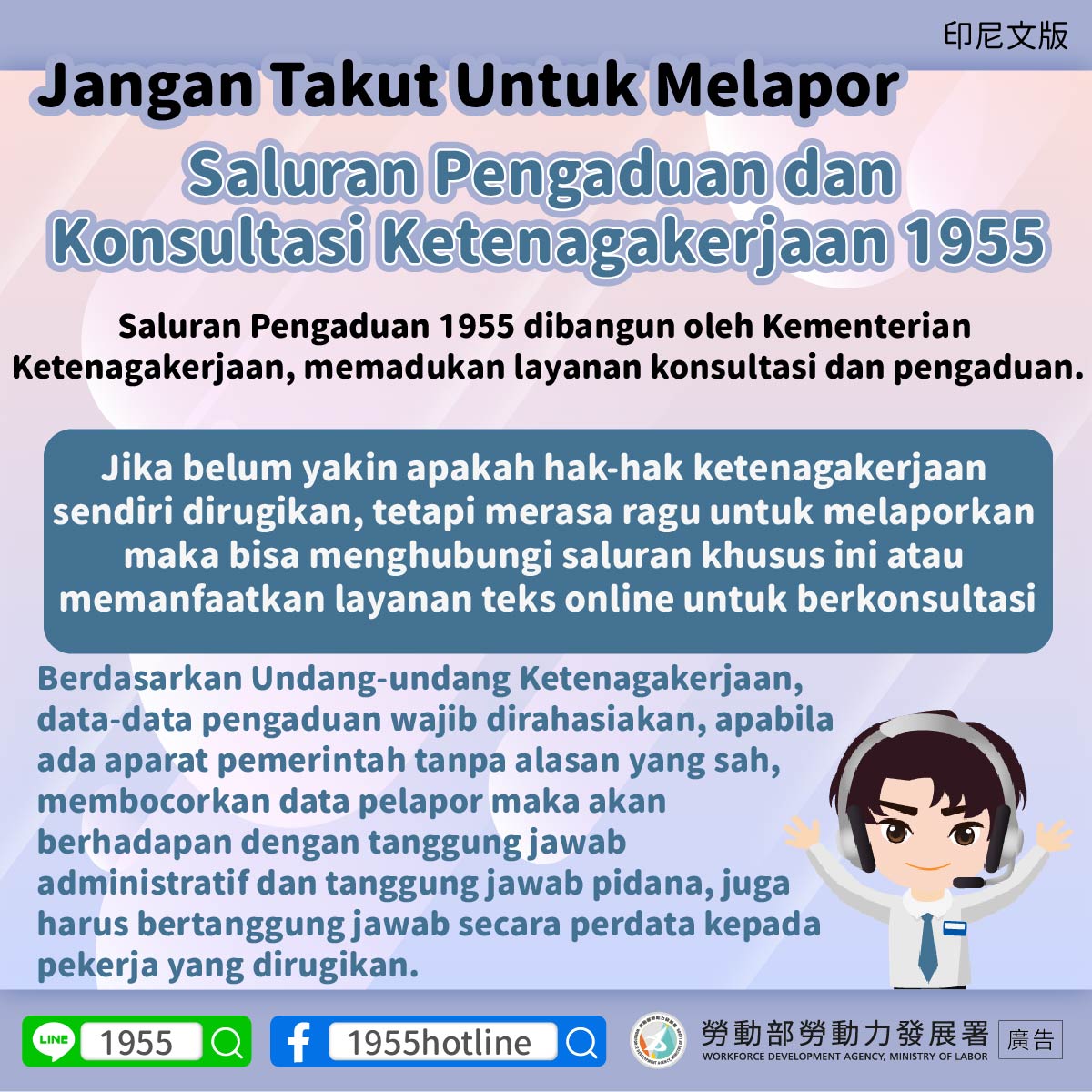 1955為勞動部建置的免費諮詢申訴專線,專線結合了諮詢及申訴的服務