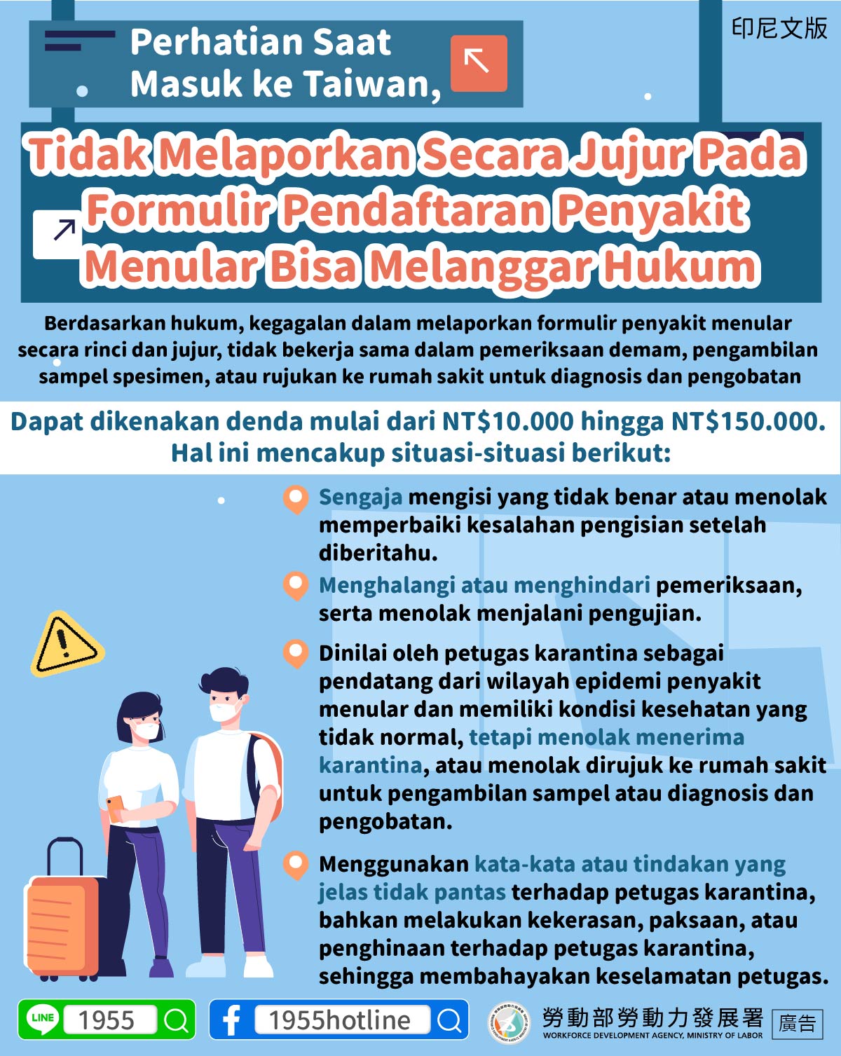 ▍Perhatian Saat Masuk ke Taiwan, Tidak Melaporkan Secara Jujur Pada Formulir Pendaftaran Penyakit Menular Bisa Melanggar Hukum