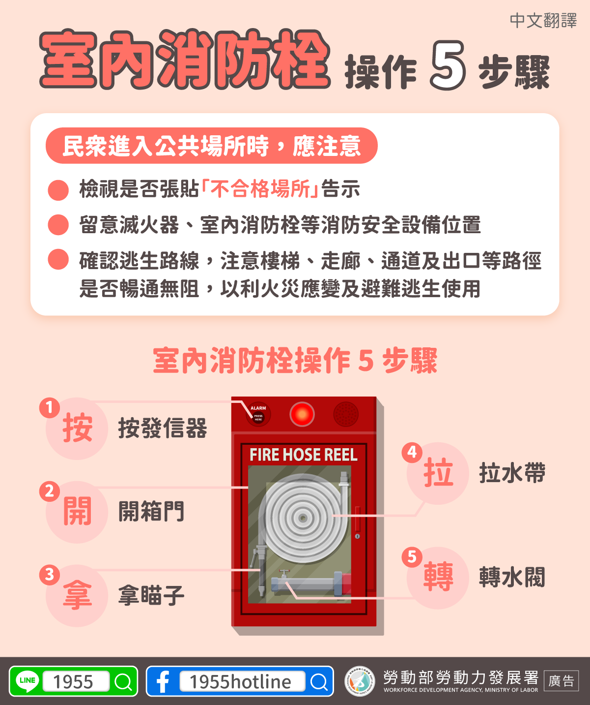 室內消防栓操作 5 步驟