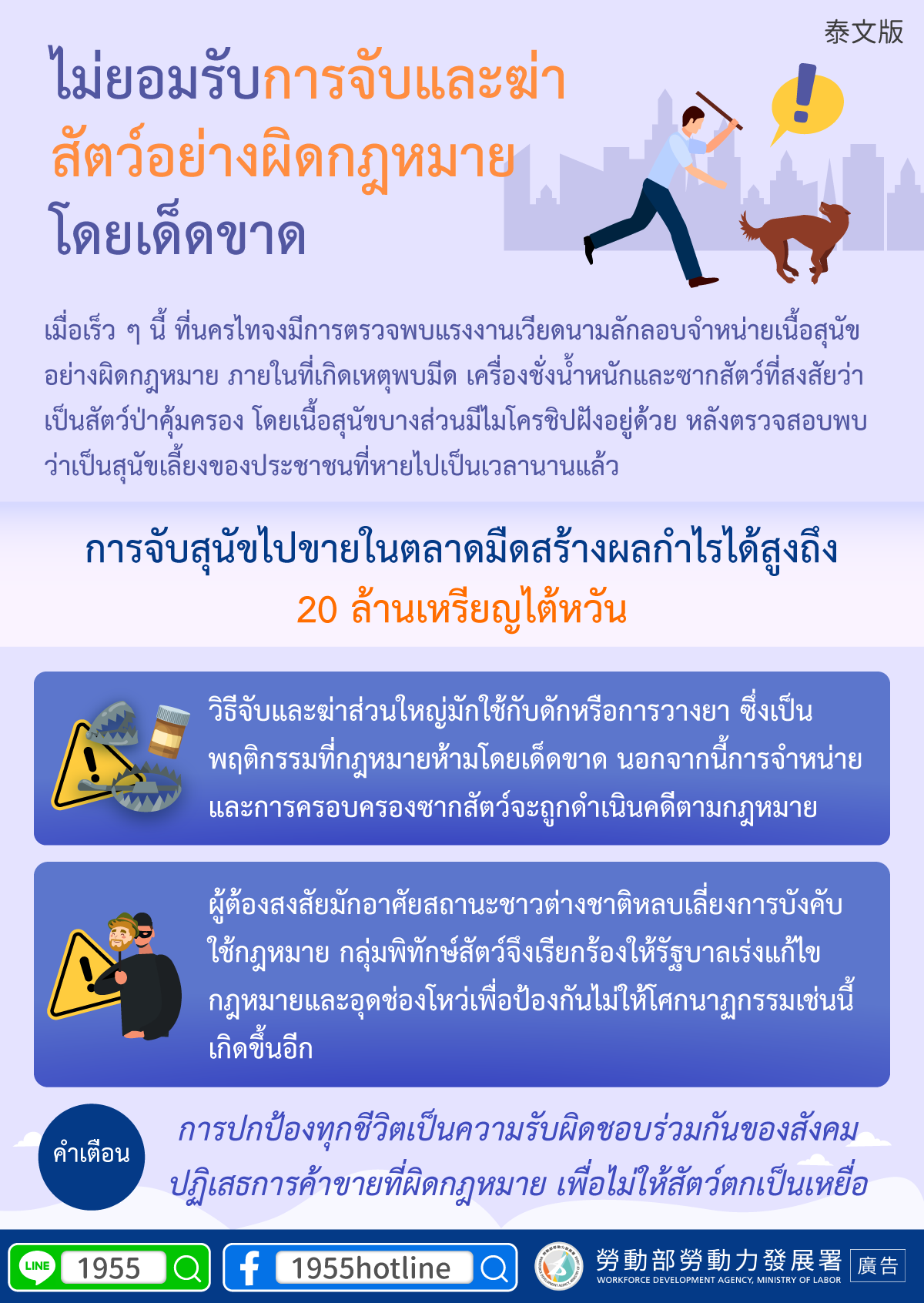 การปกป้องทุกชีวิตเป็นความรับผิดชอบร่วมกันของสังคมปฏิเสธการค้าขายที่ผิดกฎหมาย เพื่อไม่ให้สัตว์ตกเป็นเหยื่อ