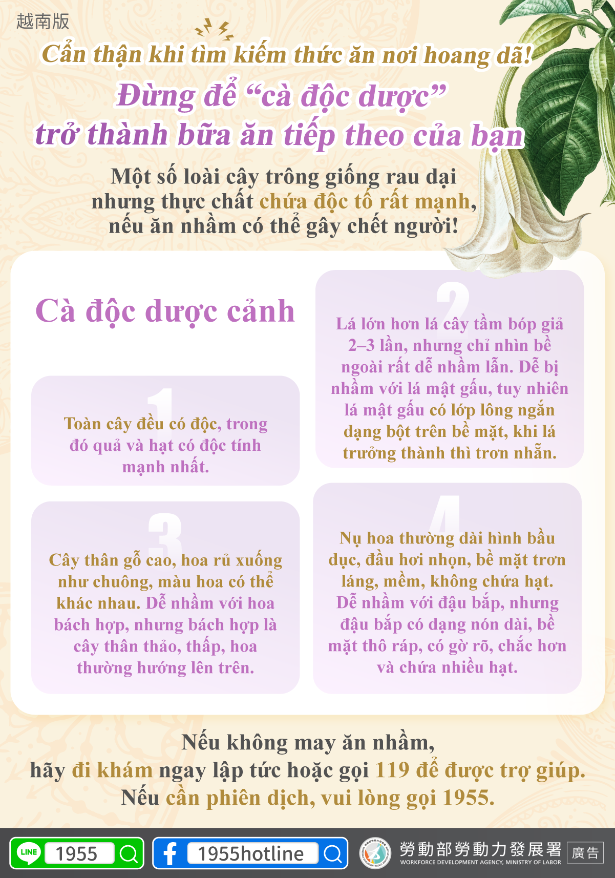 If you accidentally consume this plant, seek immediate medical attention or call 119 for assistance.If you require translation services call the 1955 Hotline.