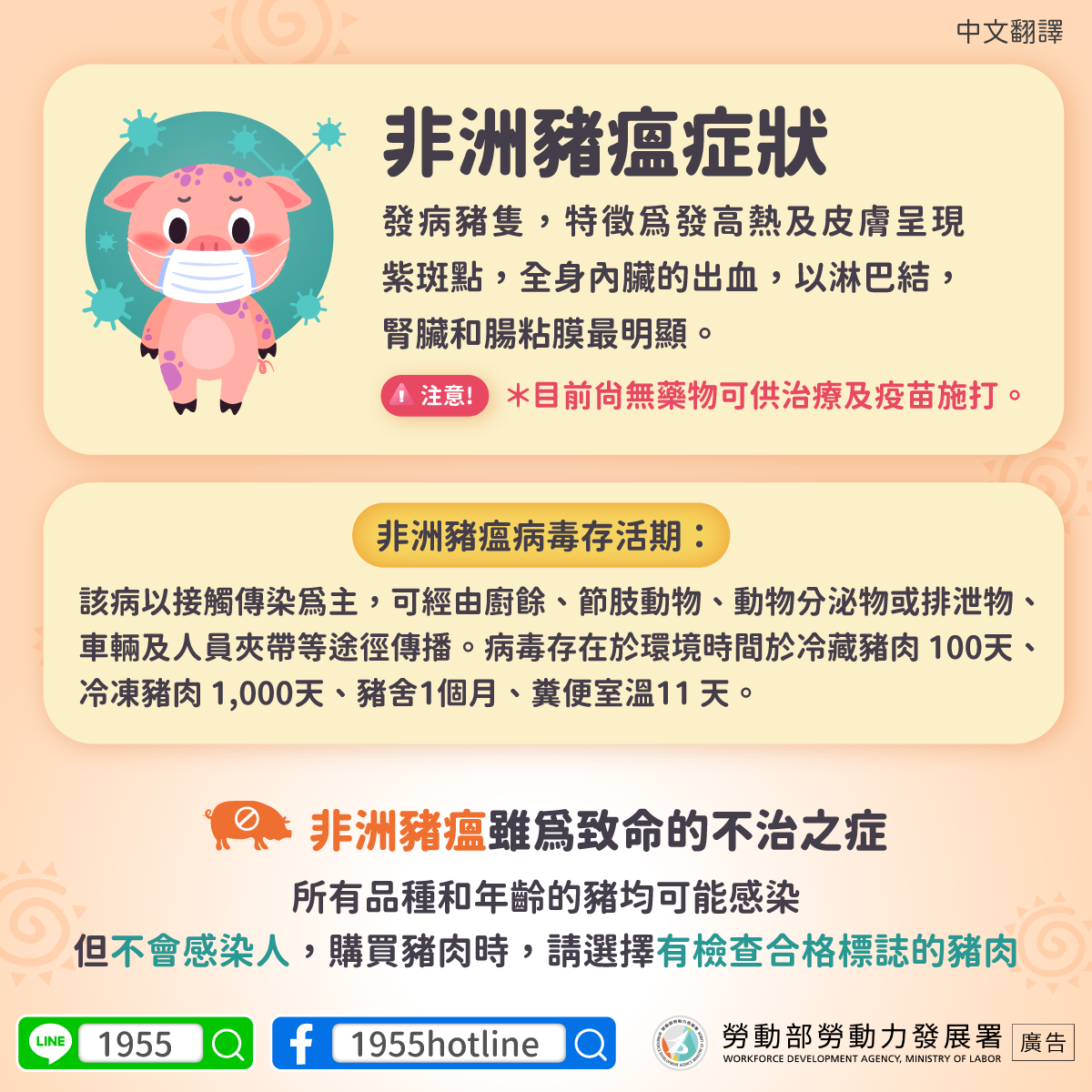 所有品種和年齡的豬均可能感染但不會感染人,購買豬肉時,請選擇有檢查合格標誌的豬肉