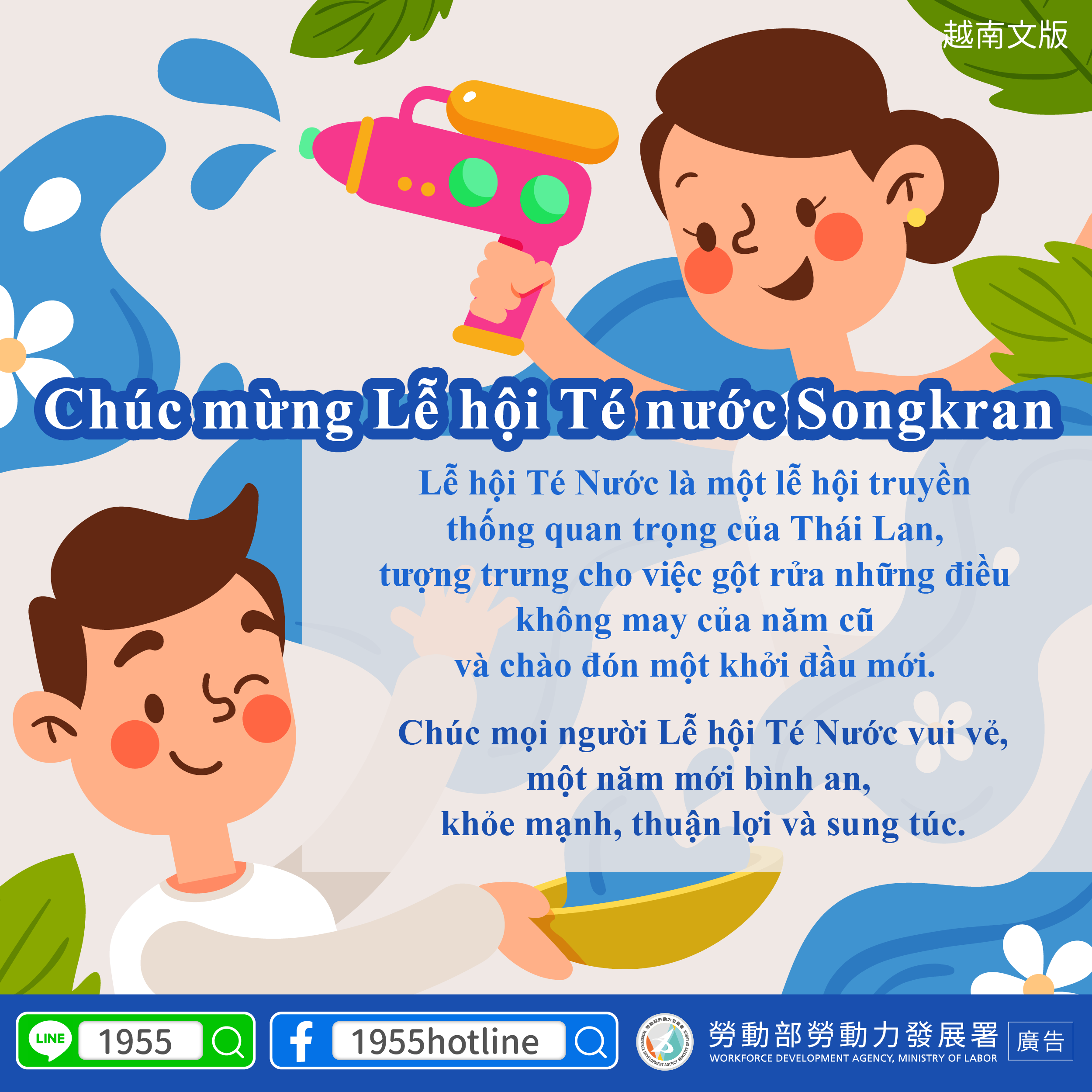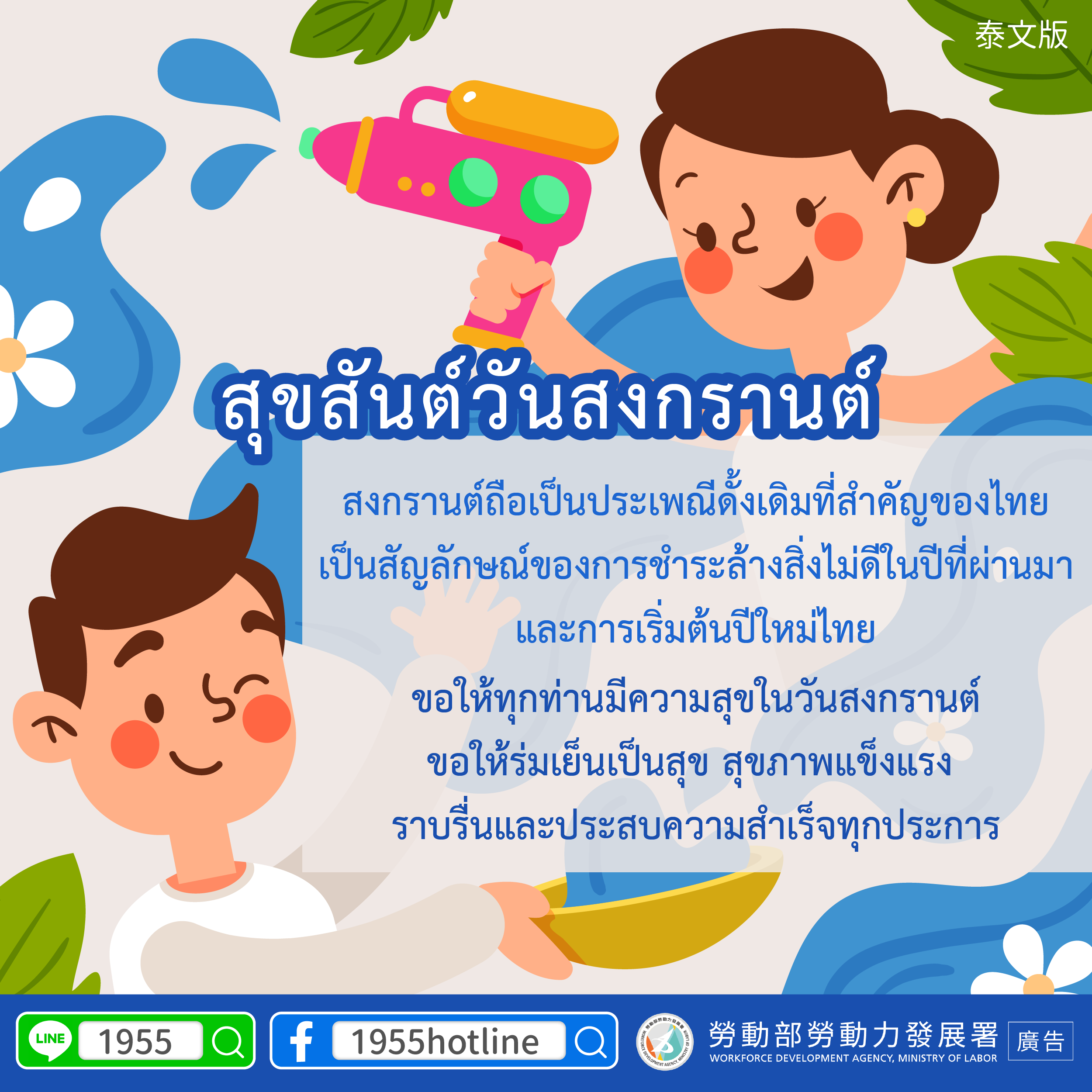 Selamat merayakan Festival Songkran untuk Anda sekalian. Semoga di tahun yang baru ini senantiasa dikaruniai kedamaian, kesehatan, kelancaran, dan kelimpahan.