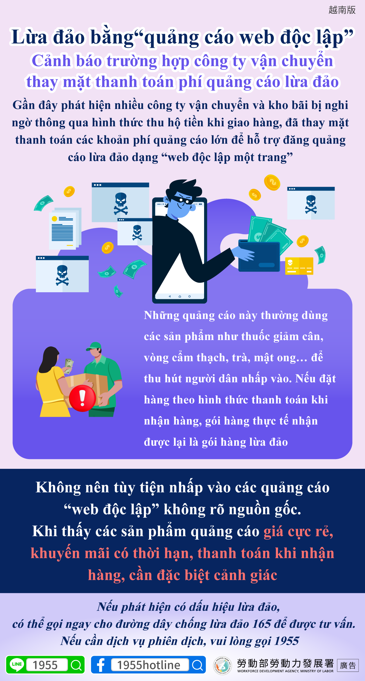 Gần đây phát hiện nhiều công ty vận chuyển và kho bãi bị nghi ngờ thông qua hình thức thu hộ tiền khi giao hàng, đã thay mặt thanh toán các khoản phí quảng cáo lớn để hỗ trợ đăng quảng cáo lừa đảo dạng “web độc lập một trang”